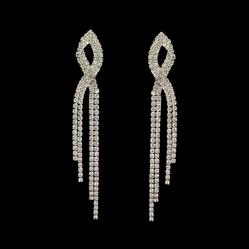 AROS PLATEADOS CON STRASS LARGO 8.5 CM