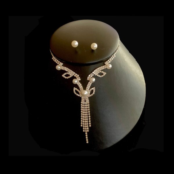 CONJUNTOS PLATEADOS DE STRASS CON PERLAS VIDRIO