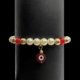PULSERAS DE IMITACION PERLAS CULTIVO CON DORADO CON OJITO DE VIDRIO NEGRO – ELASTIZADA