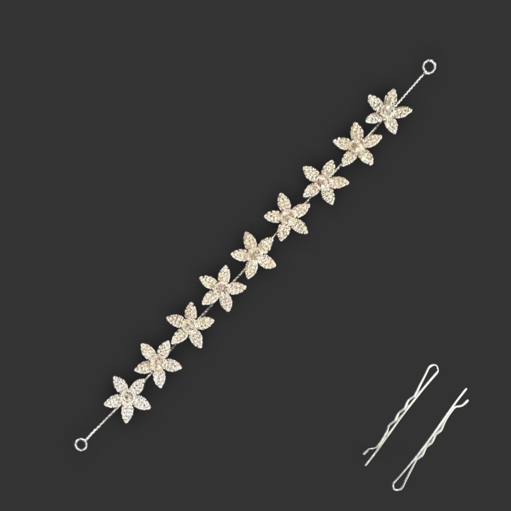 APLIQUE PARA PELO PLATEADO 27CM CON STRASS CON HEBILLAS