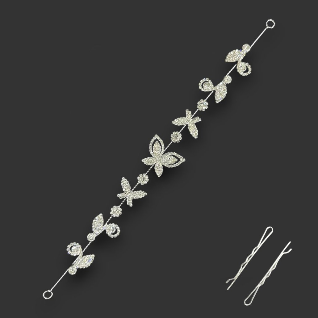 APLIQUE PARA PELO PLATEADO 27CM CON STRASS CON HEBILLAS