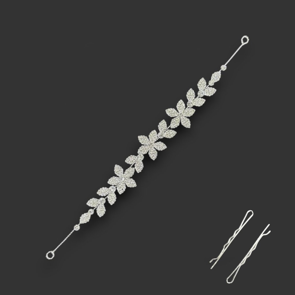 APLIQUE PARA PELO PLATEADO 27CM CON STRASS CON HEBILLAS
