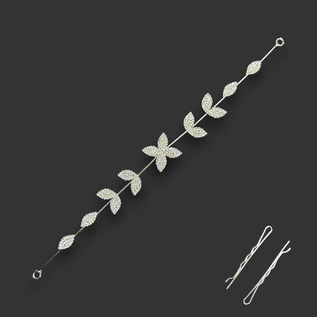 APLIQUE PARA PELO PLATEADO 27CM CON STRASS CON HEBILLAS