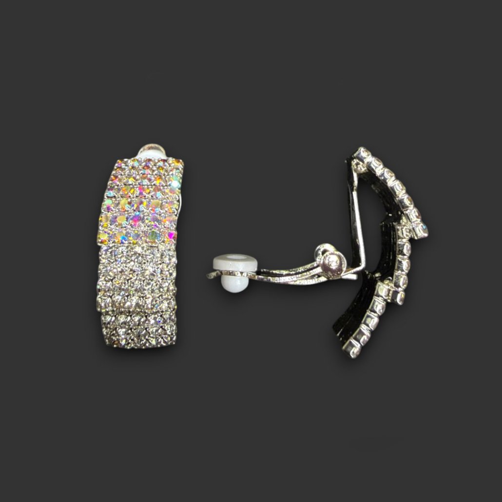 AROS CLIP PLATEADOS CON STRASS LARGO 3.5 CM