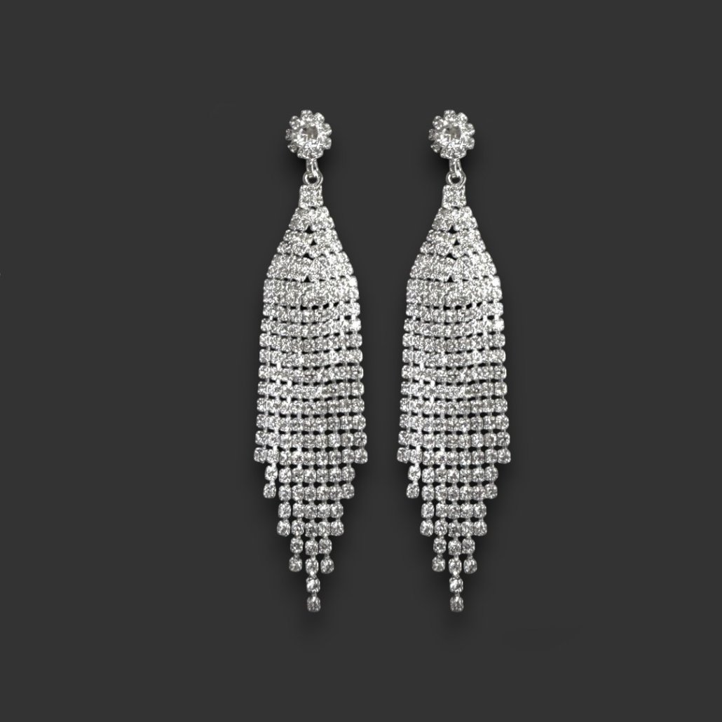 6.5AROS PLATEADOS CON STRASS LARGO 6.5 CM