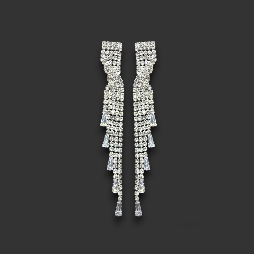 AROS PLATEADOS CON STRASS LARGO 8.5 CM