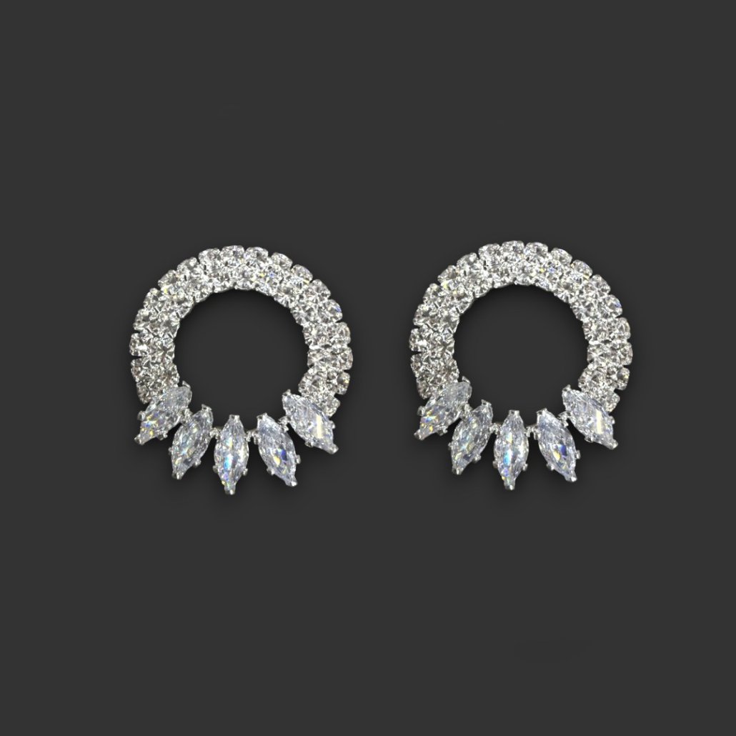 AROS PLATEADOS CON STRASS LARGO 2.5 CM