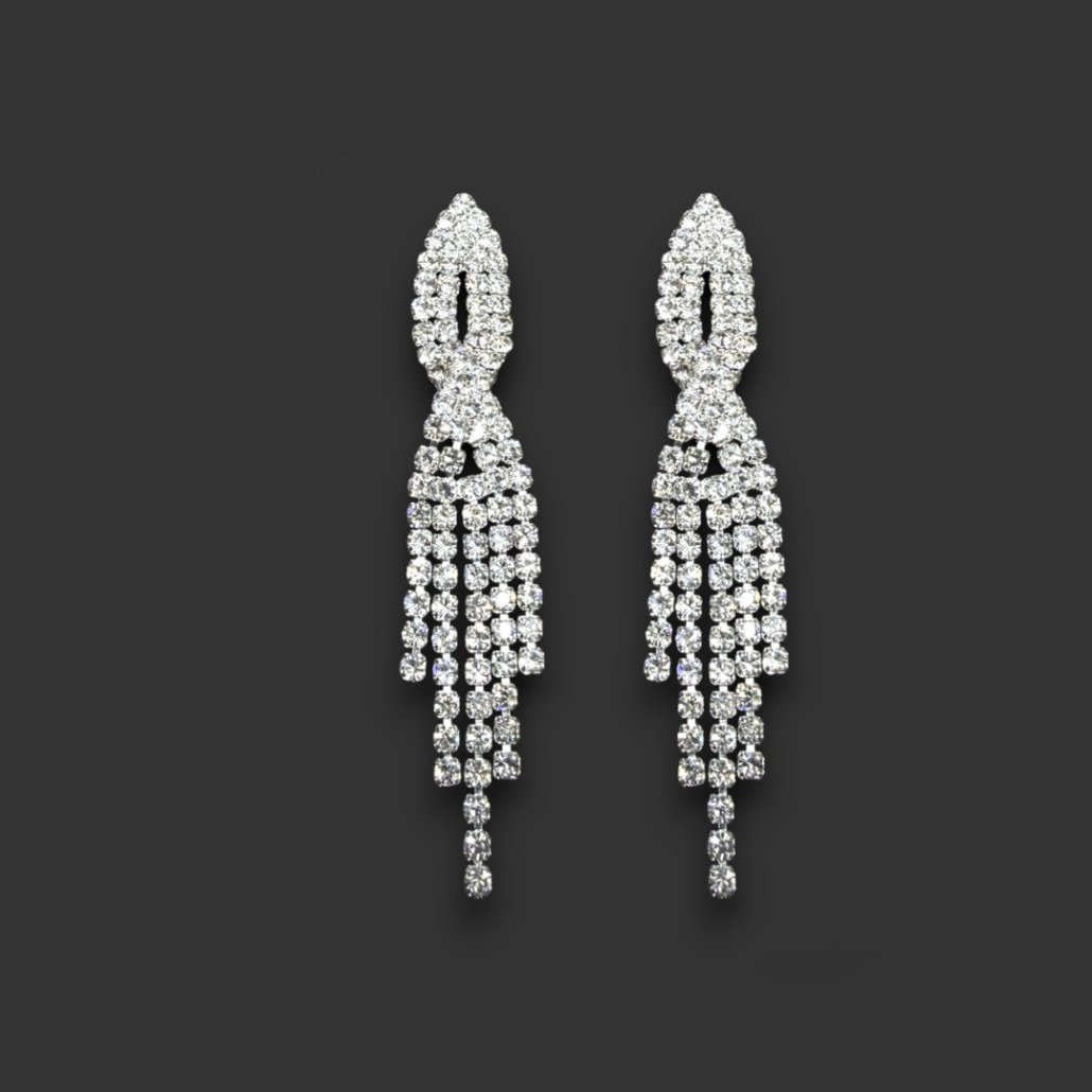 AROS PLATEADOS CON STRASS LARGO 5.5 CM