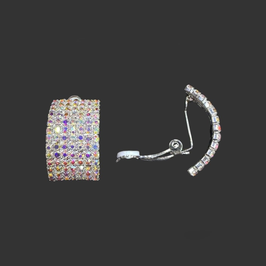 AROS CLIP PLATEADOS CON STRASS LARGO 3 CM