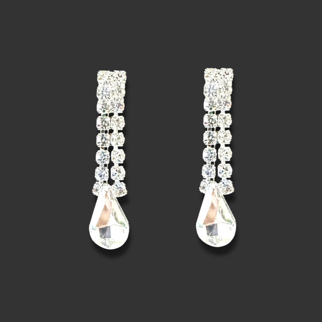 AROS DE STRASS PLATEADO LARGO 2.5CM