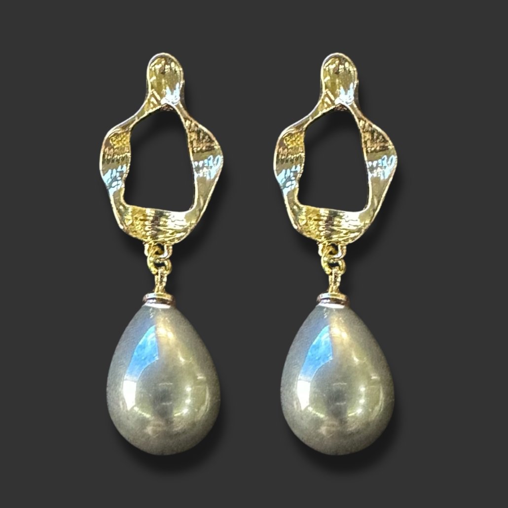 AROS DE BIJOUTERIE DORADO CON PERLA DE IMITACION COLOR HEMATITE LARGO 4.5CM
