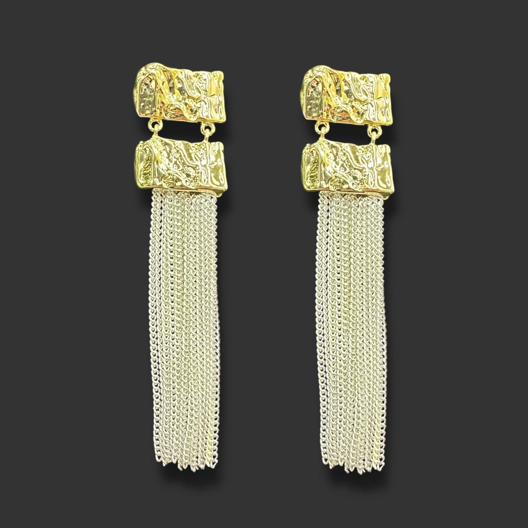 AROS DE BIJOUTERIE PLATEADO Y DORADO LARGO 6.5CM