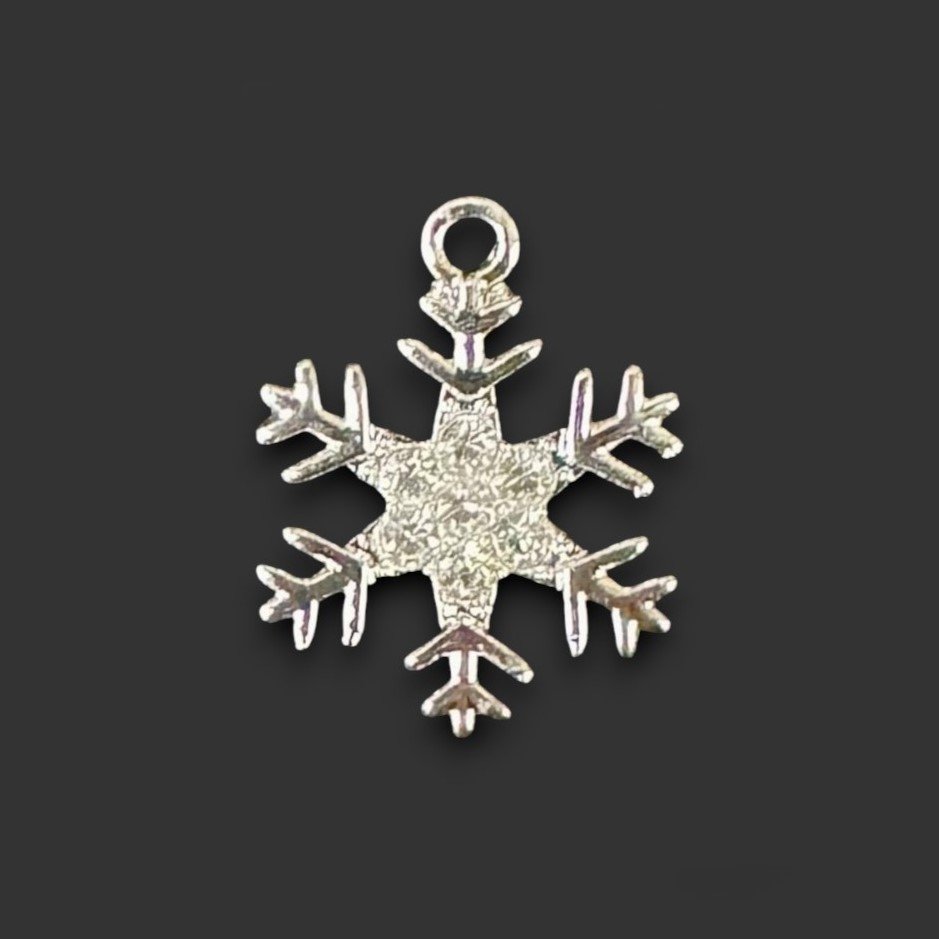 FORNITURA – DIJE PLATEADO CON FORMA DE COPO DE NIEVE CON STRASS MEDIDA 20x20MM