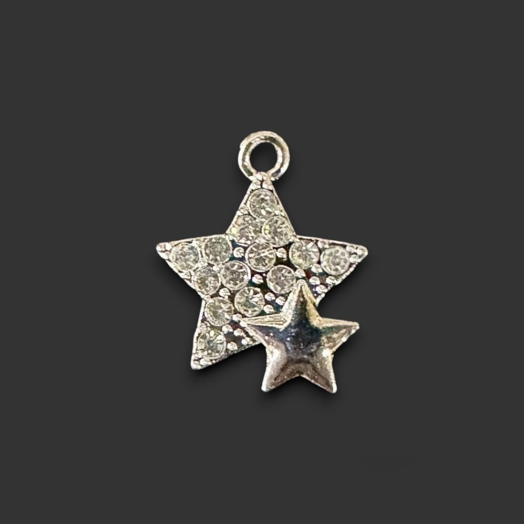 FORNITURA – DIJE PLATEADO CON FORMA ESTRELLAS CON STRASS MEDIDA 15x15MM