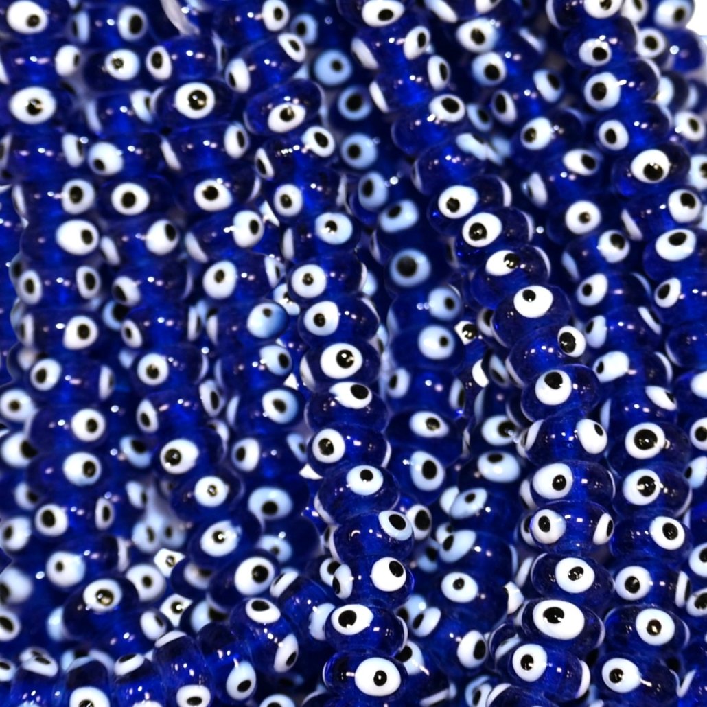 OJO TURCO ARANDELA DE VIDRIO 4×8 AZUL HILOS x 50 UNIDADES
