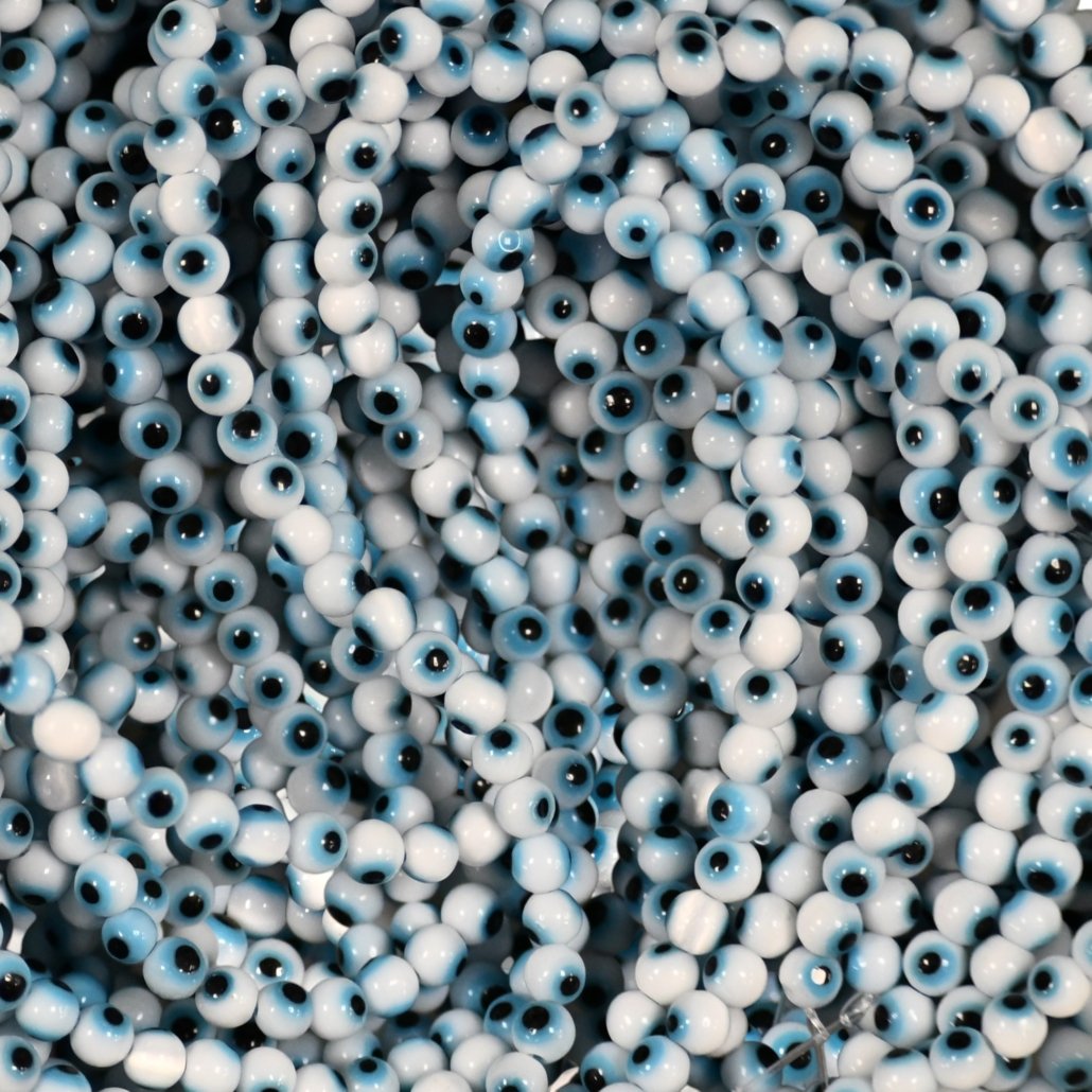OJO TURCO 4MM REDONDO DE VIDRIO COLOR BLANCO HILOS x 90 UNIDADES