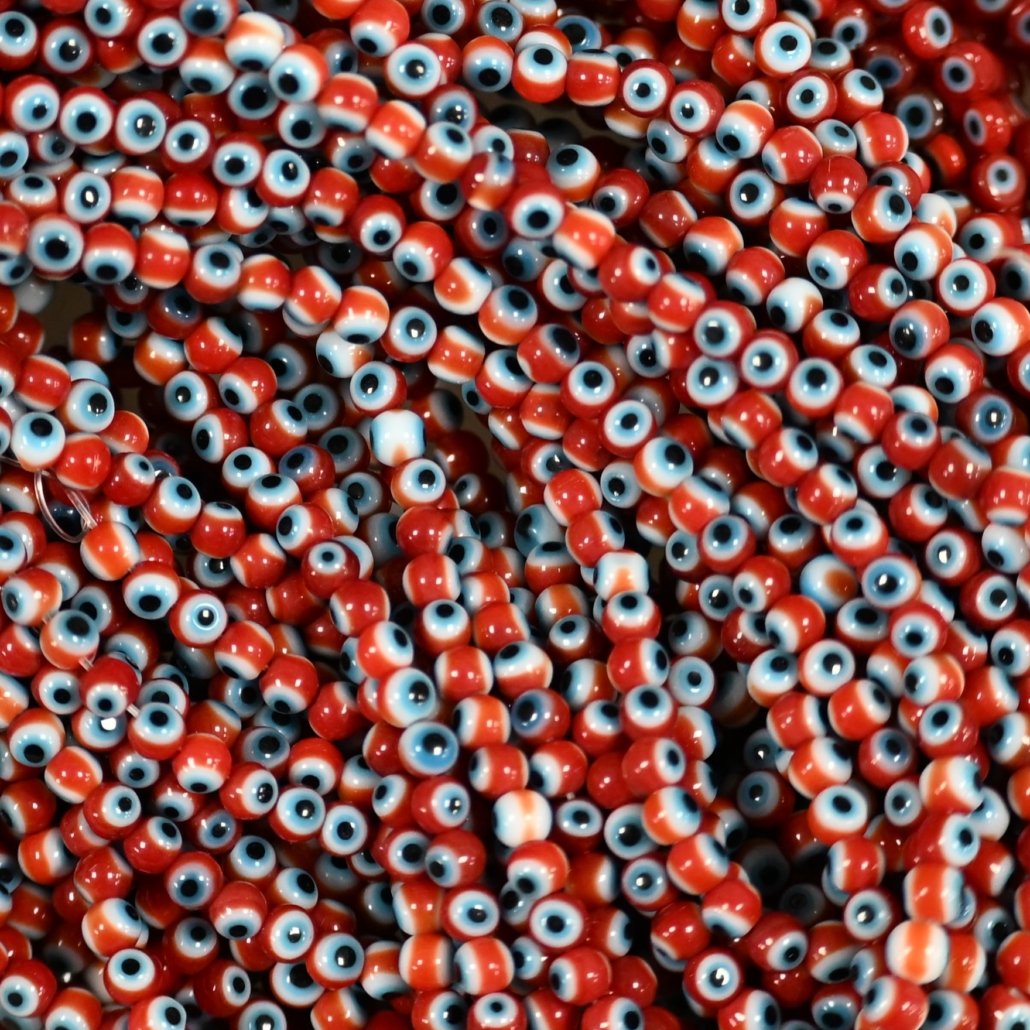 OJO TURCO 4MM REDONDO DE VIDRIO COLOR ROJO HILOS x 90 UNIDADES