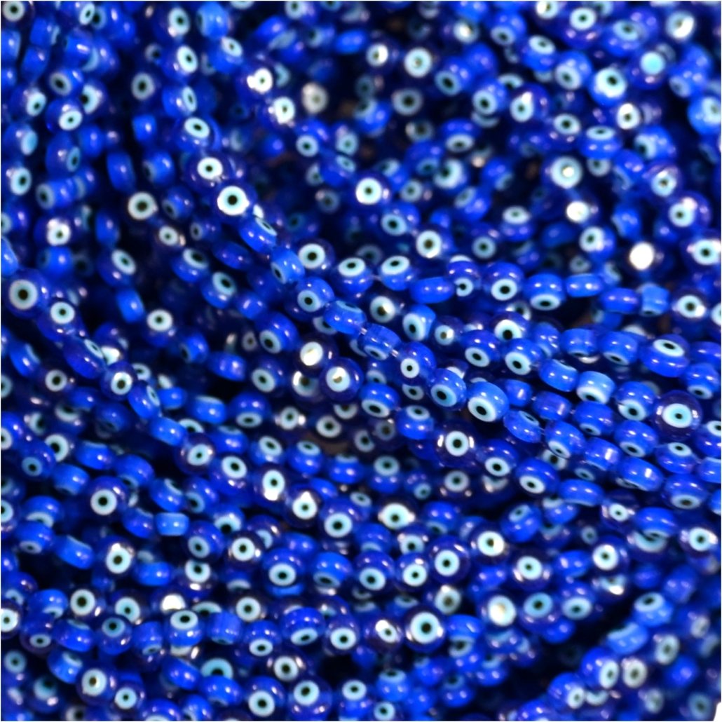 OJO TURCO 4MM PASTILLA (REDONDO PLANO) DE VIDRIO COLOR AZUL HILOS x 95 UNIDADES