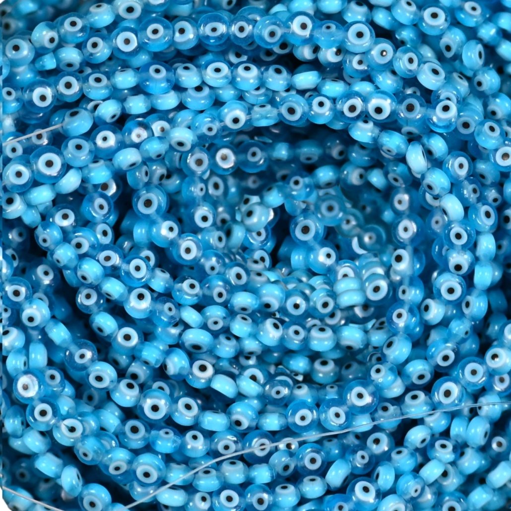 OJO TURCO 4MM PASTILLA (REDONDO PLANO) DE VIDRIO COLOR CELESTE HILOS x 95 UNIDADES