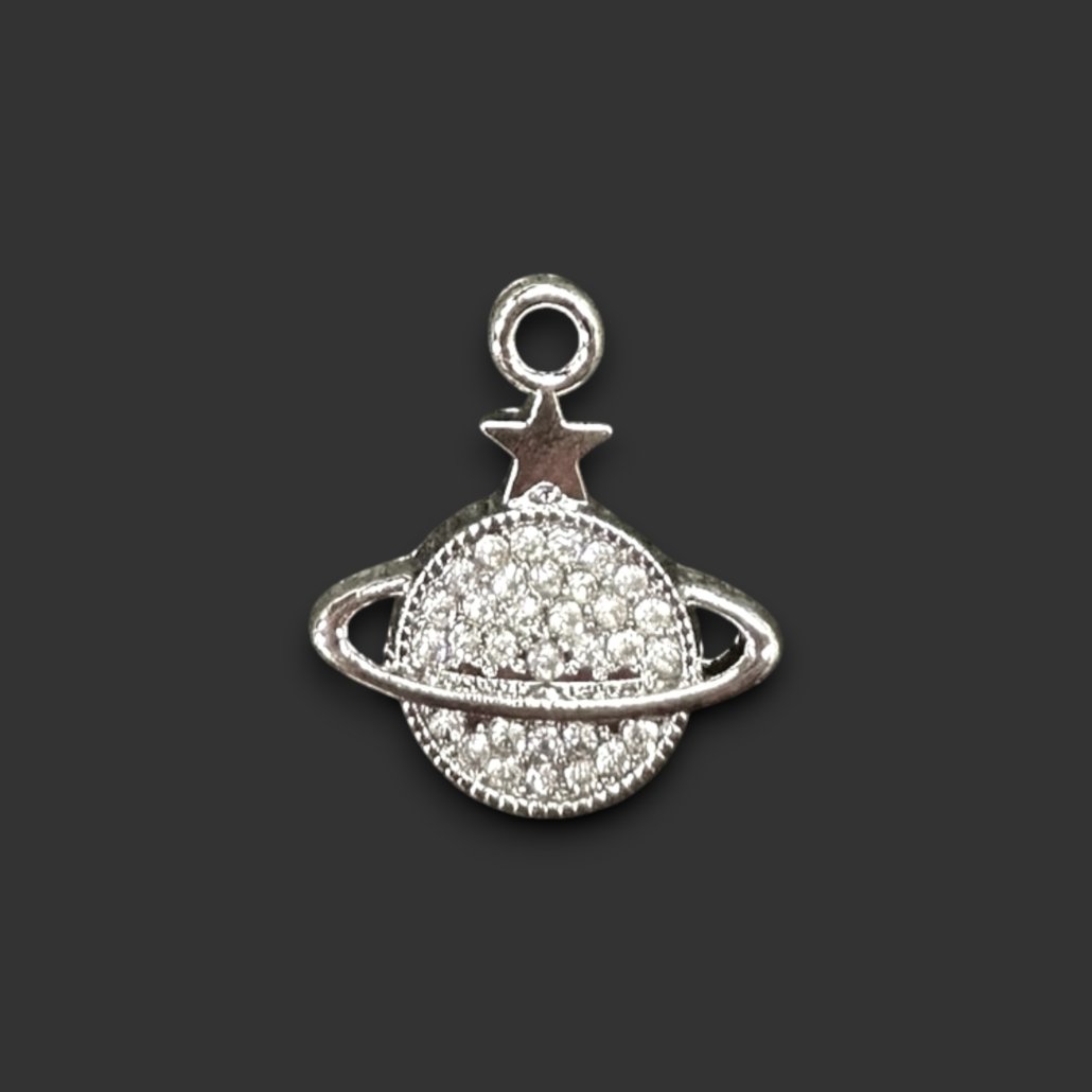 FORNITURA – DIJE PLATEADO CON STRASS – MEDIDA 14x17MM