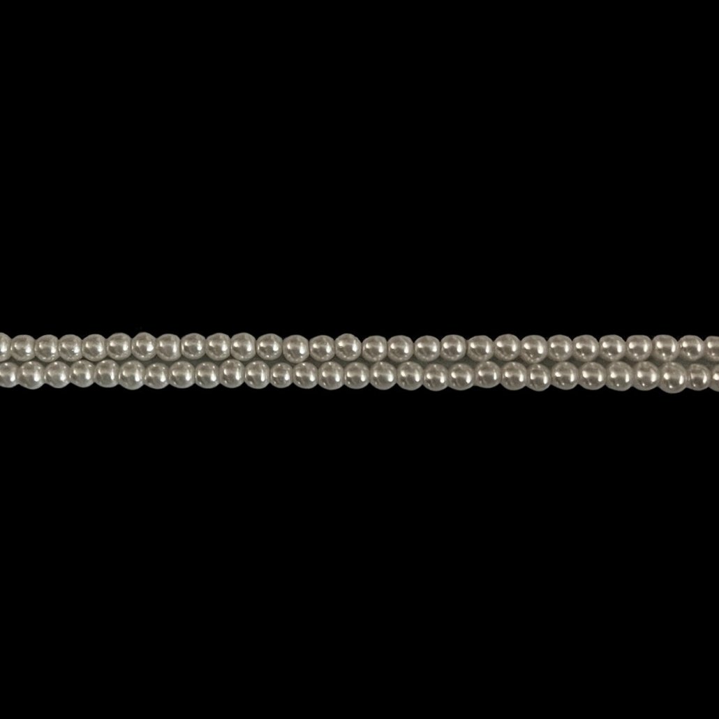TIRAS DE PERLAS DE VIDRIO 6MM COLOR PERLA BLANCA- LARGO x 80CM – CANTIDAD APROX. x HILO: 150 UNIDADES